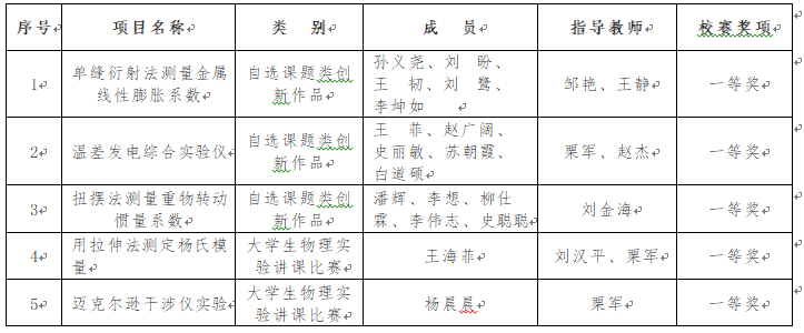 “2021年全国大学生物理实验竞赛(创新)” 是大学生物理实验类唯一全国性赛事,旨在锻炼并提高大学生物理实验基本素养、创新思维和团队协作精神,至今已举办十年,已入选教育部学科竞赛排行榜。经过同学广泛参与,评委筛选,最终选拔出五支队伍参加国赛。现将“2021年全国大学生物理实验竞赛(创新)”校级选拔赛成绩公布如下: