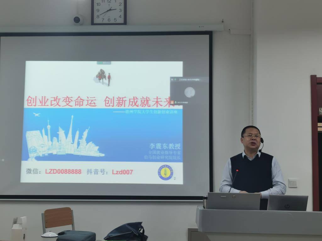下午,李教授还为我校参加第五期“三个一”创业能力培训的学生做了“创业改变命运,创新成就未来!”的报告。李教授从我国创新创业的现状,以及大学生在创新创业过程中需要具备的素质等方面,结合自身的大学经历以及自己创业的历程,和同学们分享了创业经验, 报告过程中同学们很受触动,不断响起热烈掌声。来自文学与新闻传播学院、教师教育学院和外国语学院的830多名学生,通过腾讯会议直播形式,聆听了报告。