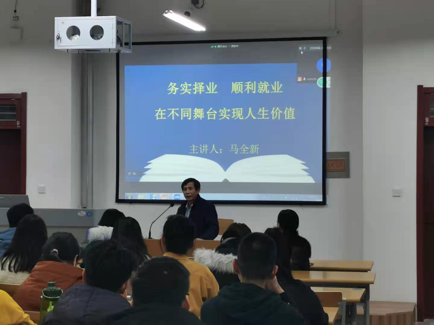 在当今大学毕业生人数不断增加,就业形势愈加严峻的情况下,培养大学生的创新创业意识,提高其创业就业能力具有十分重要的意义与作用。为此,创新创业学借助学校开展在校大学生“三个一”创业能力培训之机,12月6日下午,邀请德州市人力资源和社会保障局就业促进科科长马全新为同学们做了题目为“务实择业,顺利就业,在不同舞台实现人生价值”的报告。