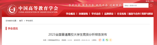 全国普通高校学科竞赛排行榜是中国高校创新人才培养暨学科竞赛成果的排行榜,是高校创新人才培养质量的重要检验标准之一。近年来,我校以“全方位拓展、全领域覆盖、全链式指导”思路引领,构建“三元协同、三位一体、五创融合”创新创业教育生态体系,着力培养学生的创新精神、创业意识和创新创业能力,促进人才培养质量持续提升,取得了优异成绩。2023年我校共在全国性大学生学科竞赛中获得国家级奖项166项,同比增长67.4%;省级奖项604项,同比增长41.8%。