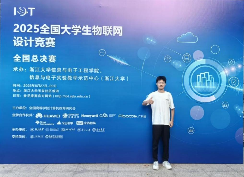 近日,2025年全国大学生物联网设计竞赛全国总决赛在浙江大学举行。我校由董文会老师指导的任逢瑜、贾方龙、赵誉和巩佳琪团队首次参赛即获得全国总决赛一等奖1项。