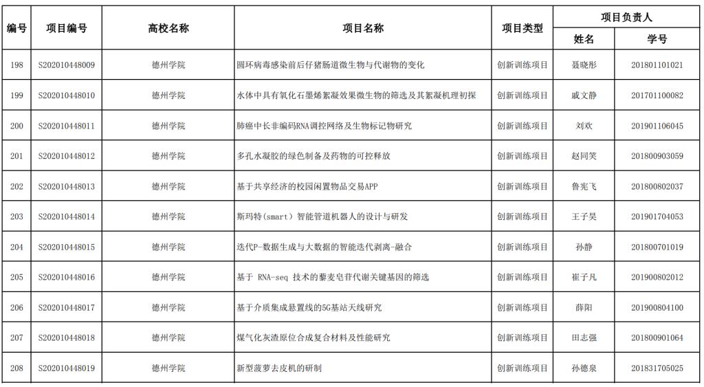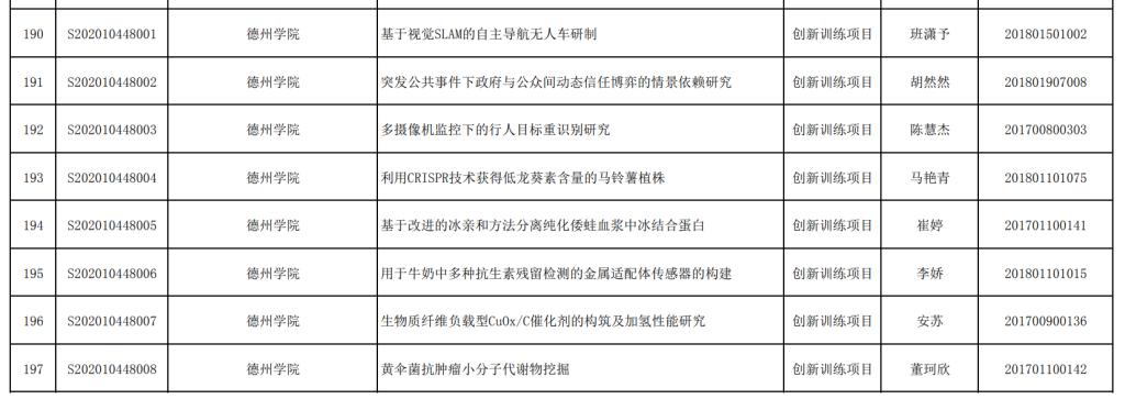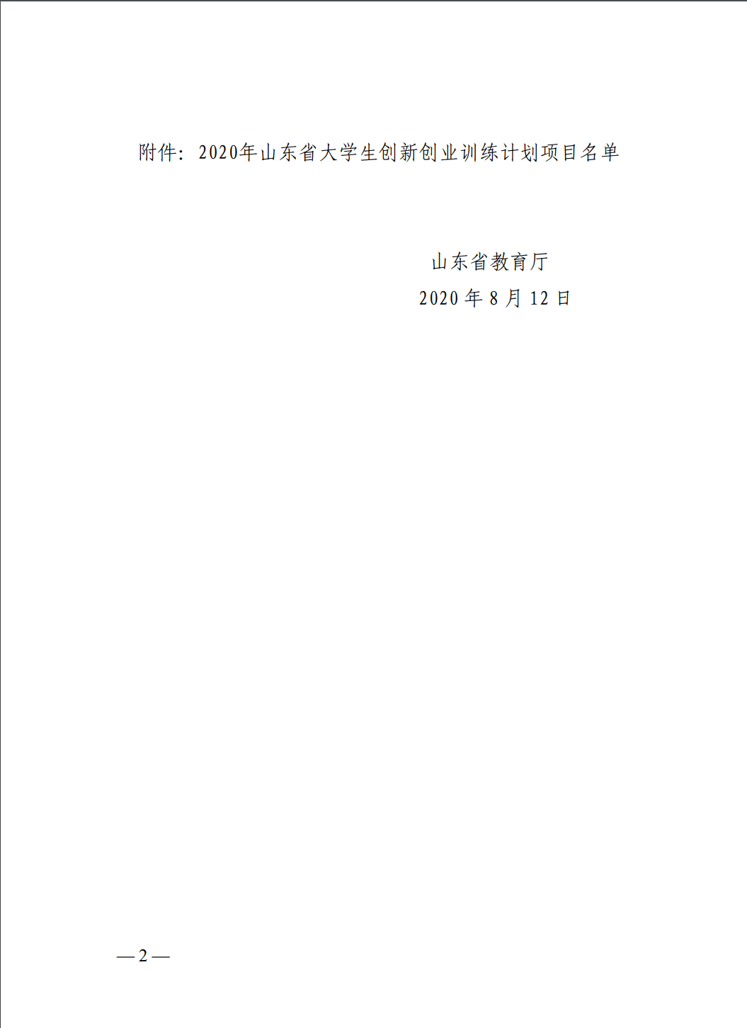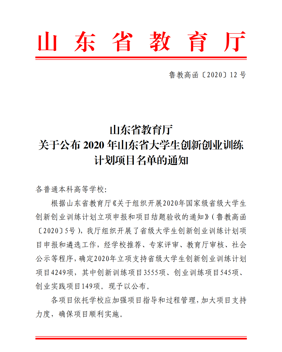 山东省教育厅关于公布2020年山东省大学生创新创业训练计划项目名单的通知